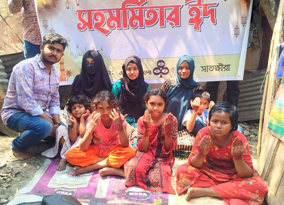 মেহেদিরাঙানো দুই হাত উঁচিয়ে ধরে ৮ বছর বয়সী শিশু মারুফা (ছদ্মনাম) ছলছল চোখে তার অনুভূতি ব্যক্ত করে বলে, ‘সবাইরে দেখতাম ঈদের আগে হাত লাল করে ঘোরে, আমারও খুব শখ ছিল। কিন্তু মা বলত—“সোনারে, মেহেদি কেনার টাকা কই? ওই টাকায় তো চাল হবে।” আজ বড় আপারা আমার দুই হাত এমন সুন্দর করে রাঙিয়ে দিল, এখন মনে হচ্ছে আমারও ঈদ চলে এসেছে। এই রংটা যেন কোনো দিন না ওঠে!’